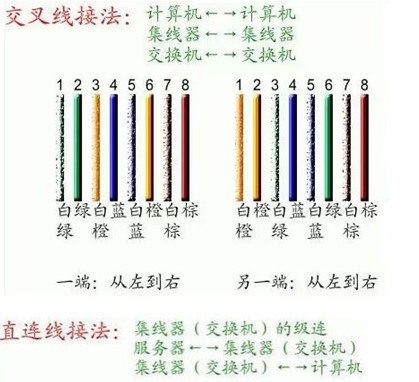 交叉線的做法是:一頭采用568A標準,一頭采用568B標準