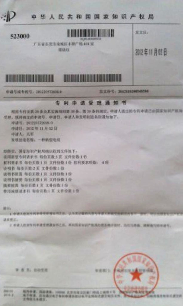金鱗羽電線電纜有限公司提交了綜合線實用專利申請