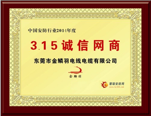 恭賀東莞市金鱗羽電線電纜有限公司榮獲慧聰網315誠信網商