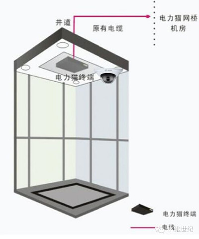電梯內安裝網絡攝像機也可采用電力貓設備,利用電梯轎廂上的220V插座實現視頻數據的傳輸。電力貓即“電力線通訊調制解調器”,是通過電力線進行網絡傳輸的Modem俗稱。電力線是電梯中的必備線纜,利用電梯內現有的電力線和插座組件局域網絡,傳輸實時的高清視頻信號,可免除了巨額的鋪設電纜投資,節省了大量的人力物力。同時具有即插即用的特點,使用較為方便。