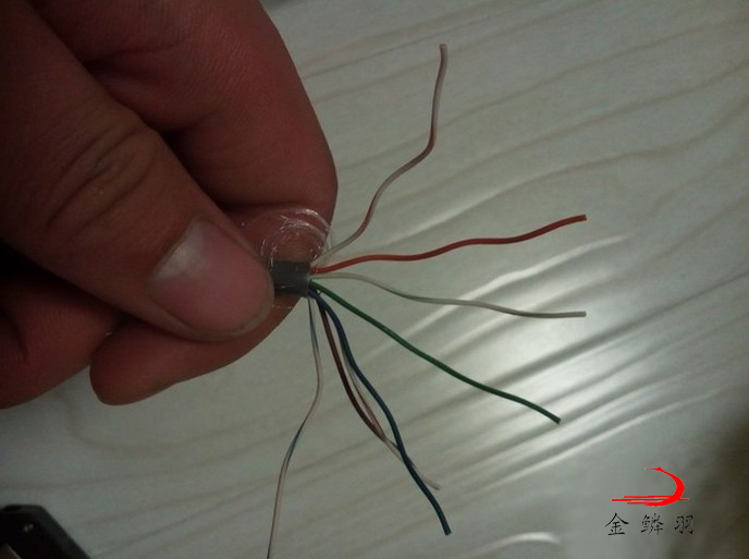 • 先用鉗子將網(wǎng)線外皮剝掉,注意別碰破里面的細(xì)線的外皮。然后將里面的八根線分散開來。